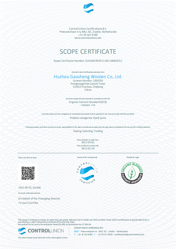 本公司現(xiàn)已認(rèn)證OCS&GRS和有機(jī)羊絨體系認(rèn)證證書(shū),如有需要的客商可聯(lián)系我司沈經(jīng)理:13957281300